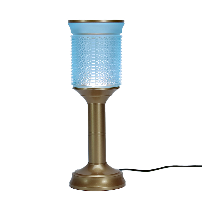 Dieses Set aus hellblauen buddhistischen Glasaltaren der Ruyi-Serie ist wirklich wunderschön! Die hellblaue Farbe vermittelt den Menschen ein Gefühl von Ruhe und Frische, als würde sie die Klarheit des Himmels integrieren. Das exquisite Schnitzhandwerk kommt auf dem Glas voll zur Geltung und jedes Muster scheint eine zarte Geschichte zu erzählen. Die goldene Verzierung verleiht einen Hauch von Luxus und Feierlichkeit. Das Räuchergefäß in der Mitte ist mit Räucherstäbchen gefüllt und der Rauch steigt auf, wodurch eine friedliche Atmosphäre entsteht. Die herum platzierten orangefarbenen Früchte verleihen dem Gesamtbild einen Hauch von leuchtender Farbe, voller Vitalität und Kraft. Ob als Dekoration oder als praktischer Gegenstand, diese Produktreihe hat einen hohen künstlerischen Wert gezeigt, der dem Auge gefällt und voller Lob ist.