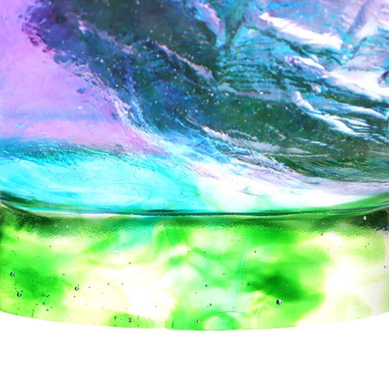 Eigentlich ist es ganz normal, dass Glaskunstwerke Blasen enthalten. Dies ist darauf zurückzuführen, dass wir das Wachsausschmelzverfahren verwenden, das natürlicherweise dazu führt, dass in den Teilen Blasen vorhanden sind. Die Art und Weise, wie das Licht durch diese inneren Blasen gebrochen wird, unterstreicht den einzigartigen Charme des Glasmaterials. Es veranschaulicht wunderbar, dass Glas tatsächlich als Gefäß für Licht dient.