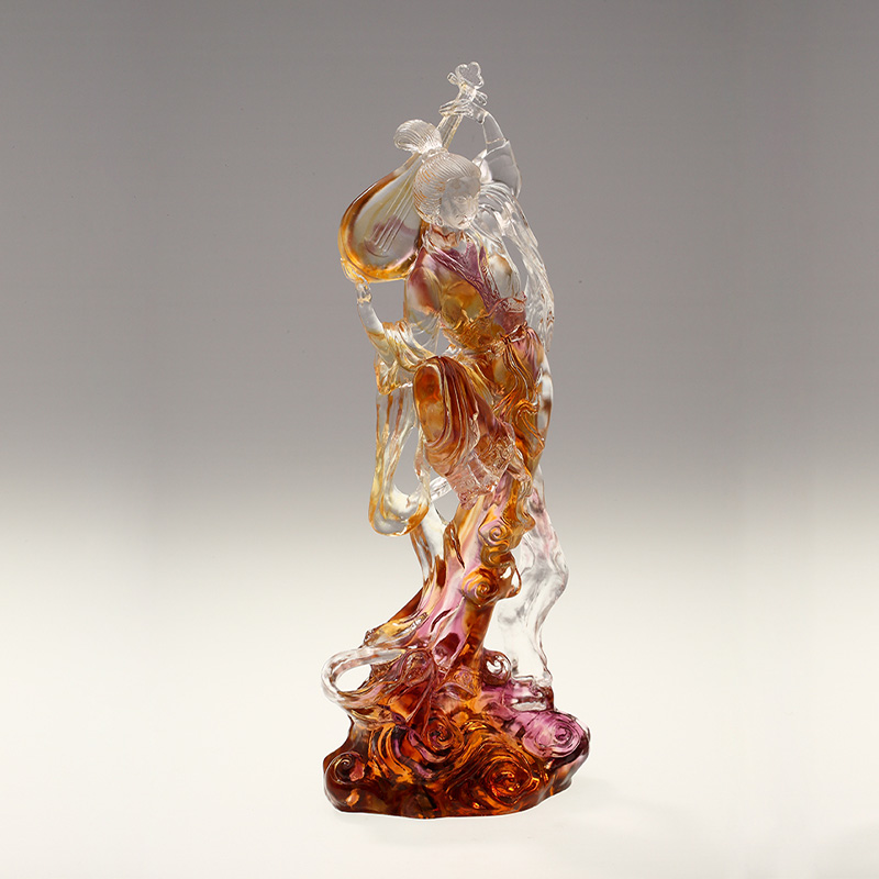 Die weibliche Figur in dieser anmutigen Glasskulptur ist groß und aufrecht, mit vielfältigen Manieren, als ob sie endlose Kraft und Eleganz in sich berge. Jedes Detail wird anschaulich dargestellt. Die Linien ihrer Kleidung sind glatt, als ob sie sich mit dem Wind bewegen würden, und zeigen eine dynamische Schönheit. Die Farbabstimmung des Glases ist clever und kann aus eleganten Tönen oder scharfen Kontrasten bestehen, die beide ihre Noblesse und Außergewöhnlichkeit hervorheben können.